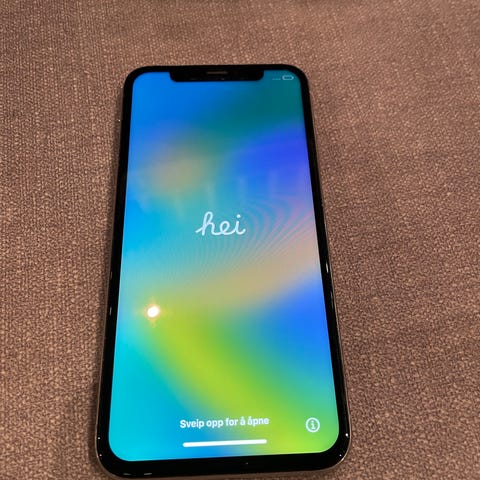 Apple iPhone X mobiltelefon med 256 GB lagringskapasitet. Telefonen er i god stand og fungerer som den skal. Nesten ikke riper, men et lite hakk i skjermen nede på venstre side (se bilde). Batteriet ble skiftet for et år siden og kapasiteten er 100%.