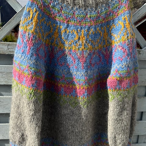 Hjemmestrikket villmarksgenser alasuq i str small/medium, godt brukt. Men pent brukt✨️ usikker på garntype.