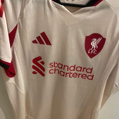 Adidas Liverpool fotballdrakt i rød farge, størrelse M for herre. Drakten har nummer 9 og navnet Isak på ryggen. Den er laget i lett og pustende materiale, egnet for fotballspill og trening. Drakten er kjøpt på DH gate. Spiller versjon