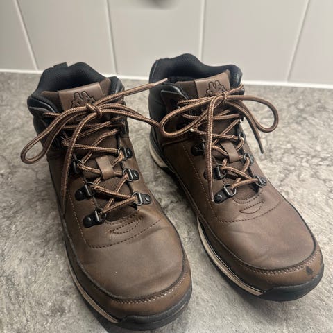 barnesko for gutt i størrelse 40. Skoene har en mørk farge og er designet for barn. De har snøring og en hvit såle. Materialet er ikke spesifisert.