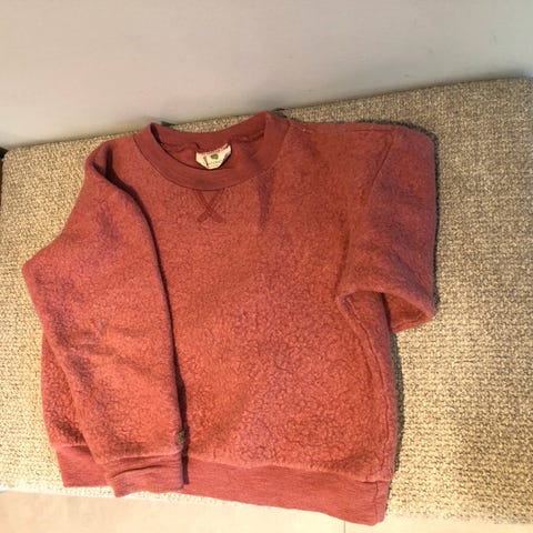 Nydelig rosa genser fra nøstebarn i ull og silke. Pent brukt, men såvidt litt krympet så mer en str.110 enn 116. Kan godt brukes fra str.98. Fortsatt myk og behagelig.
