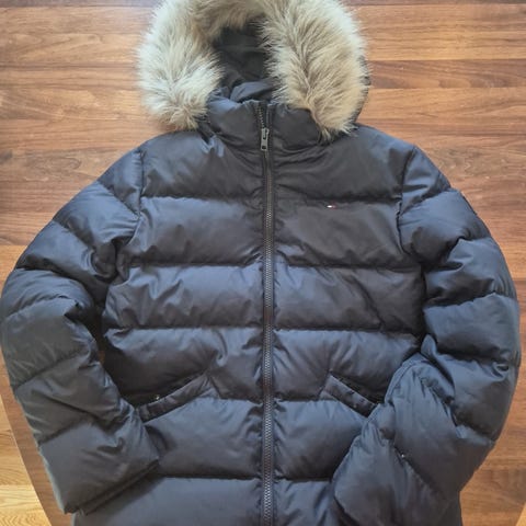 Tommy hilfiger dunjakke i str 152 (kun brukt 1 sesong) jakken er brukt, noe små merker, men ikke veldig synlig.