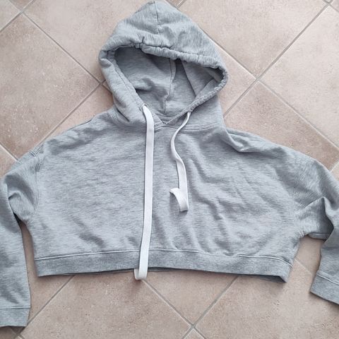 Bik Bok hettegenser i størrelse M for kvinner. Genseren er beige og laget av bomull. Den har hette med snøring og langermet design. Et par flekker men vanskelig å se