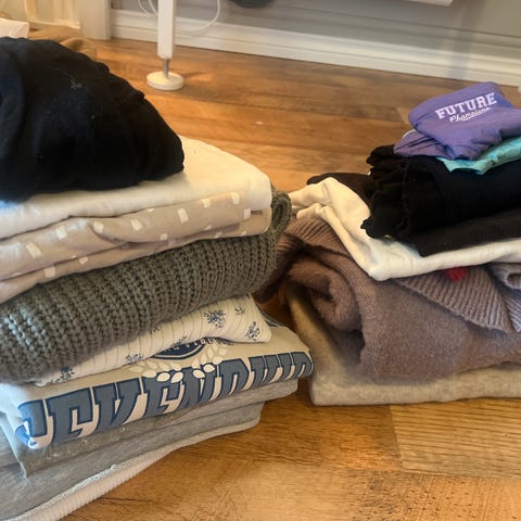 Selger en stor klespakke str 140-152. Klærne er brukt samtidig så vil si pakken er en 140/146. Mange av buksene er ubrukt da jenta vår ikke likte de. Kan fårekomme små bruksmerker å flekker (som ikke er prøvd å fjernet). Legger mere oppi pakken mens jeg rydder