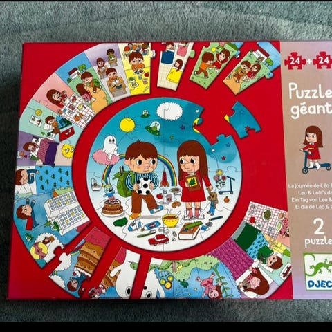 Djeco Puslespill gigant med 6 forskjellige jungeldyr. Du pusler et og et dyr og de kommer med ulikt antall brikker jo større dyret blir, slik at det blir litt mer utfordrende for hver gang. Passer for små barn og er laget for enkel håndtering.