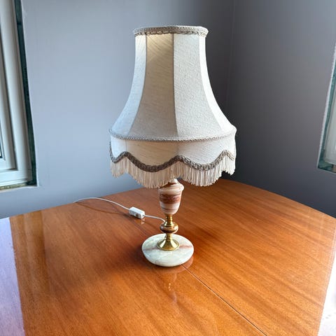 En veldig fin lampe fra Light og Living, sement eller stein lampefot med lin skjerm