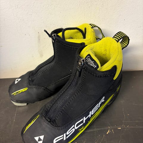 Pent brukte Fischer skisko størrelse 35. De har borrelås og glidelås foran.