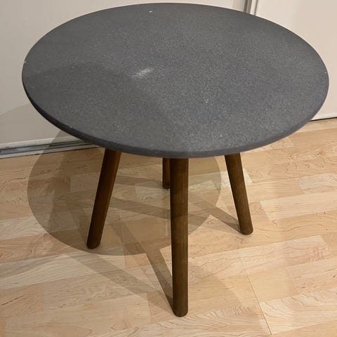 Lite metall bord jeg brukte som nattbord før, har ikke blitt brukt på flere år. Lett å sette opp og legge ned.
