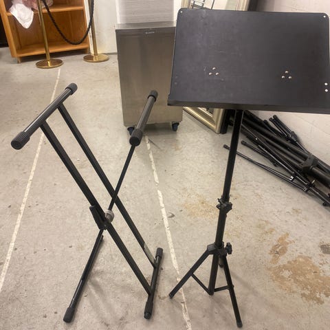 Quick-LA keyboardstativ i svart metall. Justerbar høyde og sammenleggbart design for enkel transport og oppbevaring. Egnet for bruk med ulike keybord.