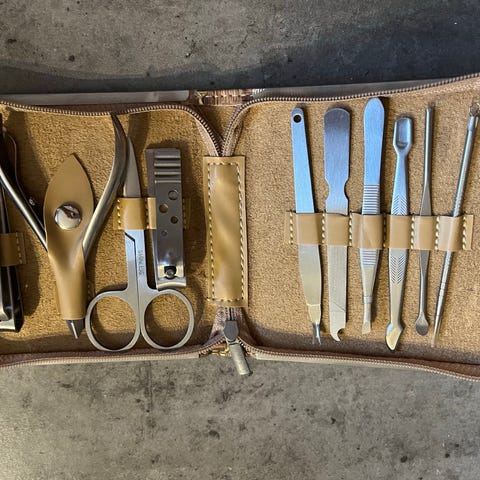 Beurer MP 62 Manikyr-/pedikyrsett med flere utskiftbare tilbehør for neglepleie. Settet inkluderer enheten, ulike filer og etuiet for oppbevaring. Designet for personlig bruk til manikyr og pedikyr.