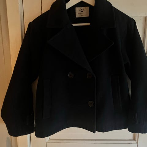 Lindex Holly & Whyte barnejakke i størrelse 146, farge blå, laget av polyester. Jakken er designet for unisex barn og har en klassisk stil med krage og knapper foran.