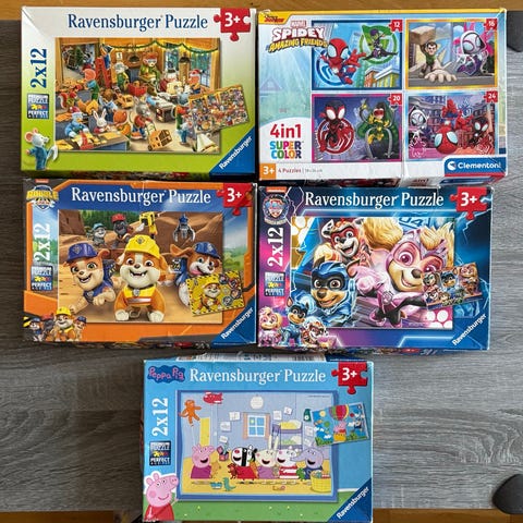 Fem forskjellige puslespill selges samlet