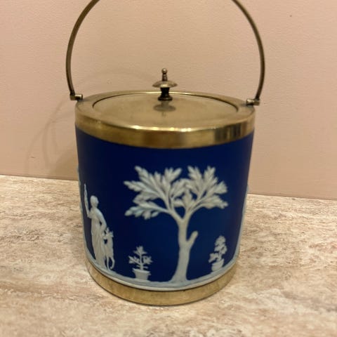 Wedgwood blå Jasperware kjeksboks i utmerket stand