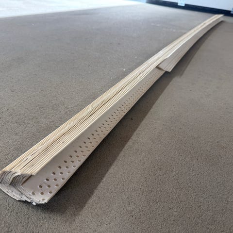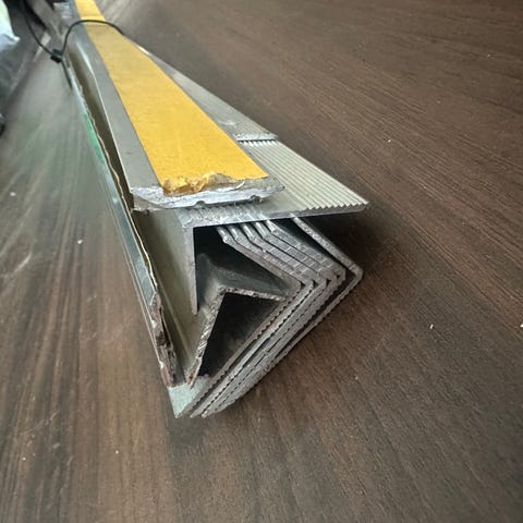 Skjøte lister for gulv , 5 stk i brun farge. Lengste 2m, 3 trappenese på1. Kan brukes i konstruksjon, reparasjon eller som støtteprofiler.