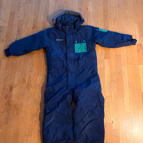 Didrikson fôret tegnsett i str. 120. Har en del bruksmerker som flekker, se bilder for mer beskrivelse. Merkene synes nesten ikke pga mønstrene på settet. Ellers ingen hull og fortsatt veldig fin.