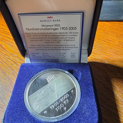 100 kr. Hundre års mynten. Nr.3. Sølv. 33.6 g.