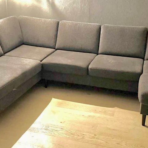 Selges billig da der haster å bli kvitt den, samt at den har revnet der modulene festes sammen. Dette vil ikke være synlig når sofa er montert. Står nå i fire deler.