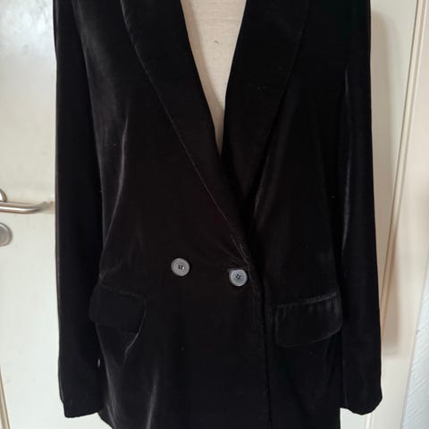 Stilren og tidløs svart jakke med åpen front og asymmetrisk fall. Jakken har et moderne snitt som gir et sofistikert uttrykk, og passer perfekt både til jobb, hverdag og mer formelle anledninger.