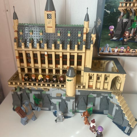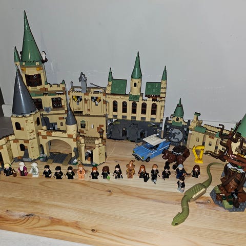 LEGO Harry Potter sett (5-6 ulike sett), som inkluderer Hogwarts slott med tårn og detaljerte bygninger, samt Quidditch bane med ringer og minifigurer. Settet inneholder også en trehodet hundfigur og flere tilbehør som representerer scener fra Harry Potter-universet. Dette har vært bygget korrekt etter oppskrift forså stått på utstilling men har vært flytte på og kan ikke garanteres som fult inntakt. Dette er ment for gøy og spennende for Harry Potter entusiaster for å utvide sin kolleksjon og inspirasjon. Kan pakkes og sendes mot frakt.