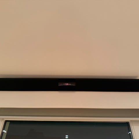 Bang & Olufsen TV med integrert høyttaler, hvit ramme og fjernkontroll. TV-en har et unikt design med perforert bakside og gulstand. Passer til bruk i hjem eller kontormiljø. Kabler følger ikke med.