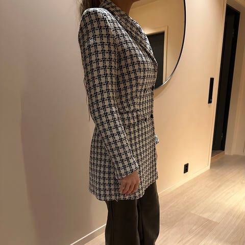 Elegant og tidløs dobbelspent blazer fra .OBJECT i klassisk rutemønster i beige, brun og sort. Blazeren har strukturert passform, pene slag og dekorative knapper som gir et sofistikert uttrykk – perfekt både til jobb og hverdagsbruk.