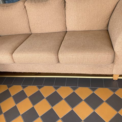 Pent brukt 3 seter sofa i skandinavisk stil. Stoffet er lyse grått og ser veldig fint ut. Seteputetrekkene kan trenge en vask.
