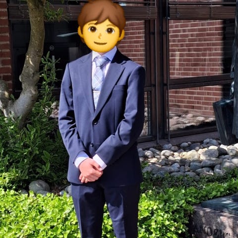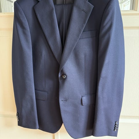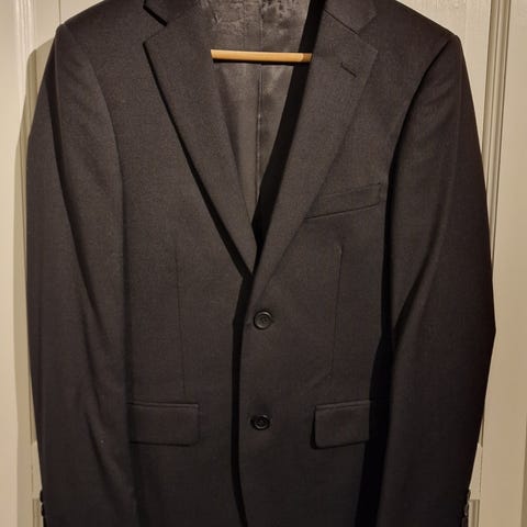 Nesten ubrukt konfirmasjonsdress fra Dressmann. Kun brukt i en konfirmasjon og julaften i løpet av 2025. Selges fordi eieren har vokst 15 cm det siste halvåret, og dressen er blitt for liten.
