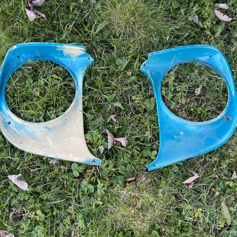Det er ei lita sprekk i plasten på baksida. Men dette kan limes, og har ingen betydning for innfesting eller bruk.