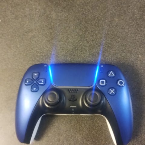 Sony DualSense trådløs kontroller i blå farge, kompatibel med Playstation 5. Kontrolleren har ergonomisk design og innebygde funksjoner for spillopplevelse på Playstation 5.