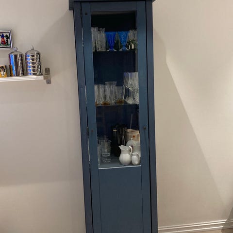 Selger dette vitrineskapet som er kjøpt fra Bohus. Det er like pent som da jeg kjøpte det. Mål: 77x35 H:150 med 2 dører og 3 hyller. Pris kan diskuteres ved rask avgjørelse.
