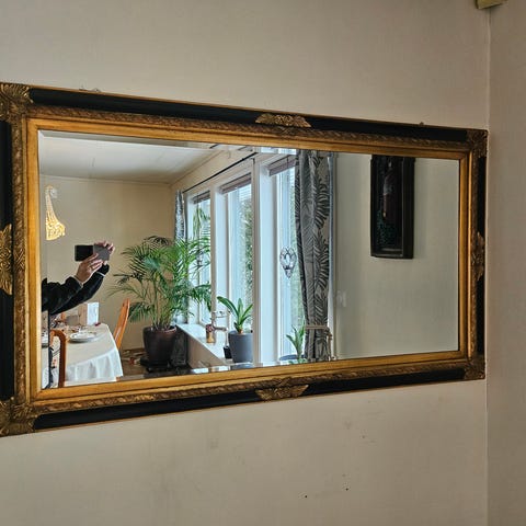 Veggspeil i veldig god stand, med kobberbelegg rundt speilet.