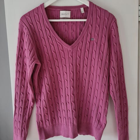 GANT ribbestrikket genser i beige farge, laget av bomull. Genseren er i størrelse L for dame og har et klassisk ribbestrikket mønster.