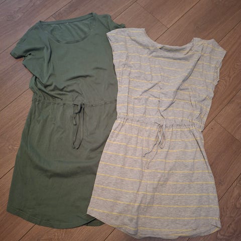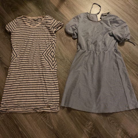 2 sommer/hverdags kjole selges samlet. Den rosa er kun prøvd på og i str s. Den stripete er brukt ett par ganger. Vil si begge tilsvarerer str xs