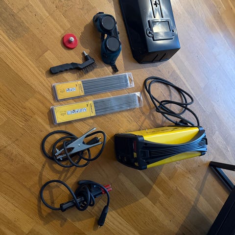 Mma sveiseapperat selges. Alt ser nytt ut, men har vanlige bruksmerker. stålbørste følger ikke med. Over 40-60 sveisepinner følger med. Ulike typer. Hjelmen kan følge med, men mangler en del, ellers helt ubrukt
