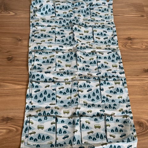 Hengende oppbevaring i mesh fra IKEA. Fikk ikke tatt bilde av de jeg har hengende, så la ved et illustrasjonsbilde fra nett. Den jeg selger har fem rom. Laget av nettingmateriale som gir god ventilasjon. Egnet for oppbevaring av leker, bamser eller annet småtteri.