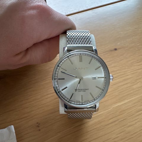 Gant Atlantic City Hvit 44 mm. Normal brukslitasje/hairlines. Ekstra lenke. 2024 mod. Original boks. Lite brukt. 1500,-
