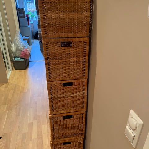 Formål: Brukes ofte som et dekorativt element for oppbevaring av forskjellige gjenstander, for eksempel sengetøy, håndklær, leker, mat (som løk), eller som gaveinnpakning.