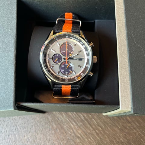 Citizen Blå/Stål Ø43 mm. 2024 mod. Ekstra lenke. Original boks. Normal brukslitasje/hairlines. 1600,-