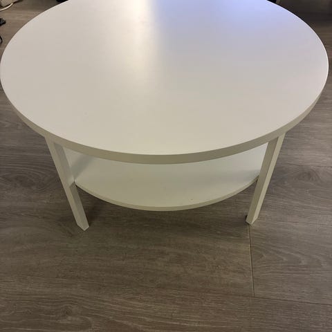 Bordet har også en lav hylle.