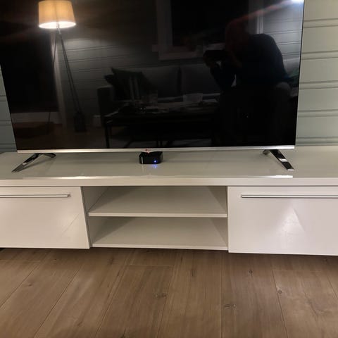 Pen TV-benk selges, med plass til alt man trenger.