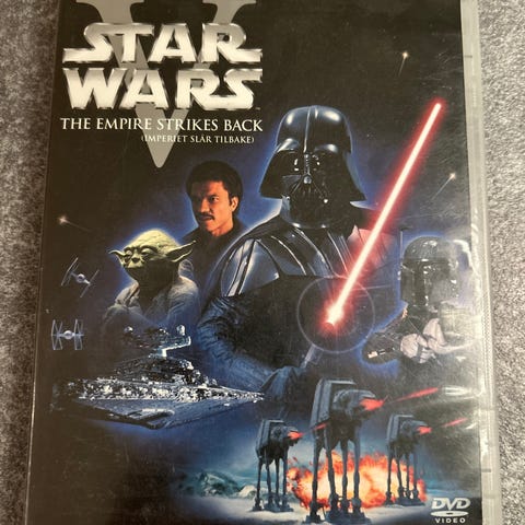Selger DVD-utgaven av Star Wars Episode V – The Empire Strikes Back (svensk utgave: Rymdimperiet slår tillbaka). Dette er en digitally THX mastered versjon, kjent for forbedret lyd og bildekvalitet.