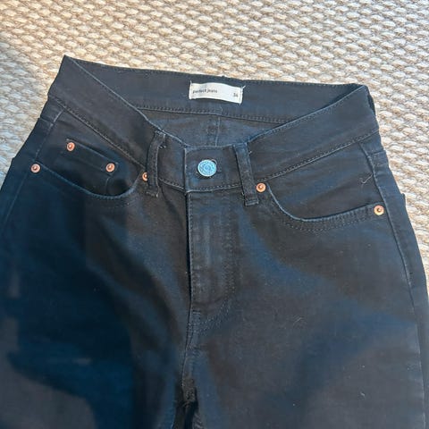 Lite brukt jeans fra Gina Tricot i str 32 selges da de dessverre er for små til meg. Har derfor heller ikke bilde på. Passer str xxs-xs. Er high waist med vide ben (wide leg).