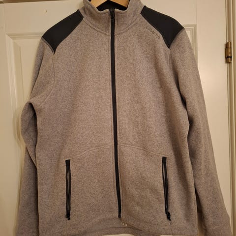 Flott og lite brukt! Muligens litt stor i størrelsen. Finstrikket bomull, mønsterstrikk, marine - tungt fall.