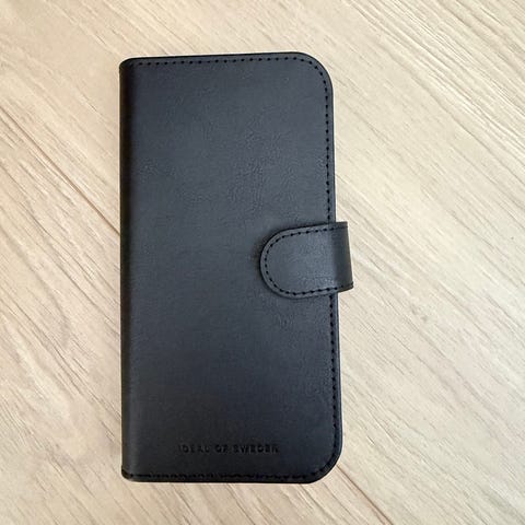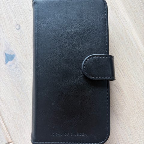 IDEAL OF SWEDEN telefondeksel med plass til kort og telefon. Dekselet har en knapp for lukking og er laget i et materiale som etterligner skinn.