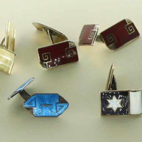 Håndlaget Mansjettknapper i sølv og gull,fra Peru.
