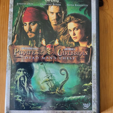 Walt Disney Pirates of the Caribbean Dead Man's Chest DVD. Film i DVD-format med originalomslaget. Inneholder filmen Pirates of the Caribbean Dead Man's Chest. Norsk tekst.