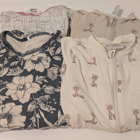 Det følger også med 2 lilleba pysjer til, her er det litt mer hull og slitasje, men fortsatt MASSE bruk igjen, den ene er str 86, den andre er str 80 - men de er som nevnt veldig romslige og passer absolutt til et barn som bruker str 86.