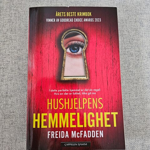 Selger den norske versjonen av "The Housemaid", altså boken "Hushjelpen" av Freida McFadden. Veldig spennende bok, utsolgt flere steder. Kun lest en gang, og boken er derfor i god stand.