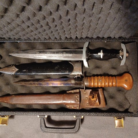 Russisk/sovjetisk taske for å bæres i belte. Jeg er usikker på om den er for patroner, (små) granater eller noe annet. Stemplet innvendig.