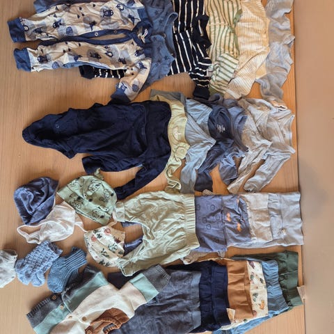 To bodydresser, et sett med body og bukse, 2 stk strømpebukser og 2 par ullsokker.